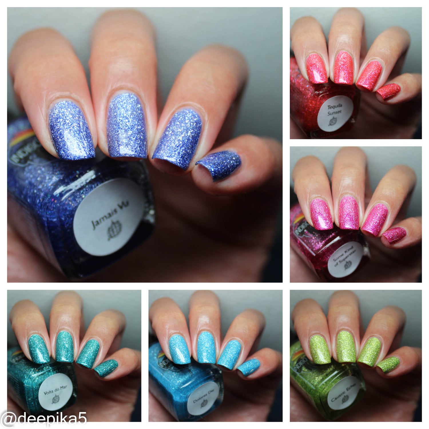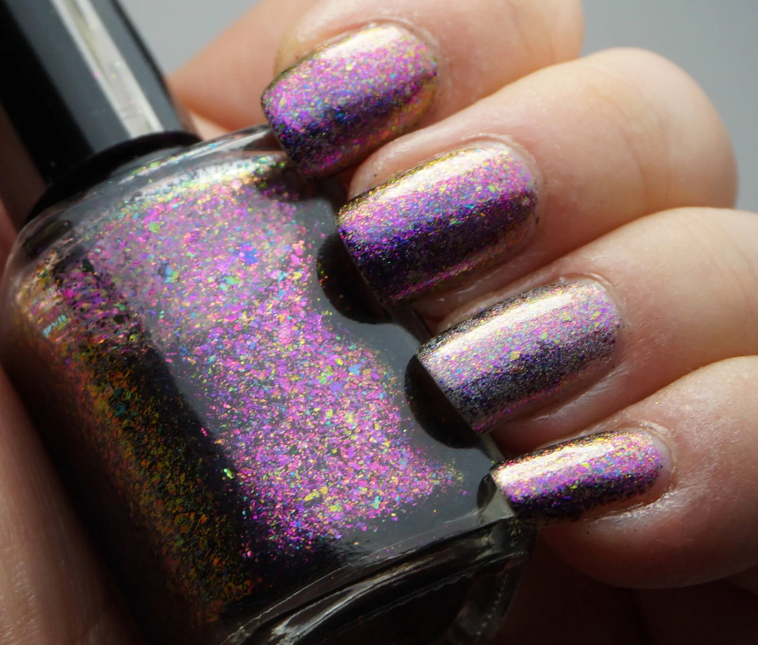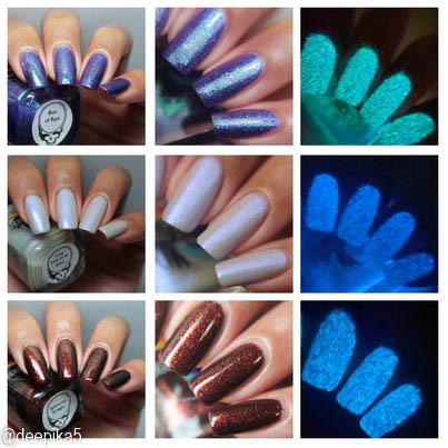 These nail polish colors contain the 'glowing' type colorshifting shimmer & flakies,...