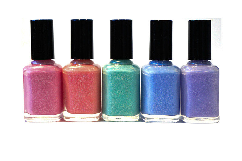 A collection of neon cremes, a white holographic, and two flakie toppers...
